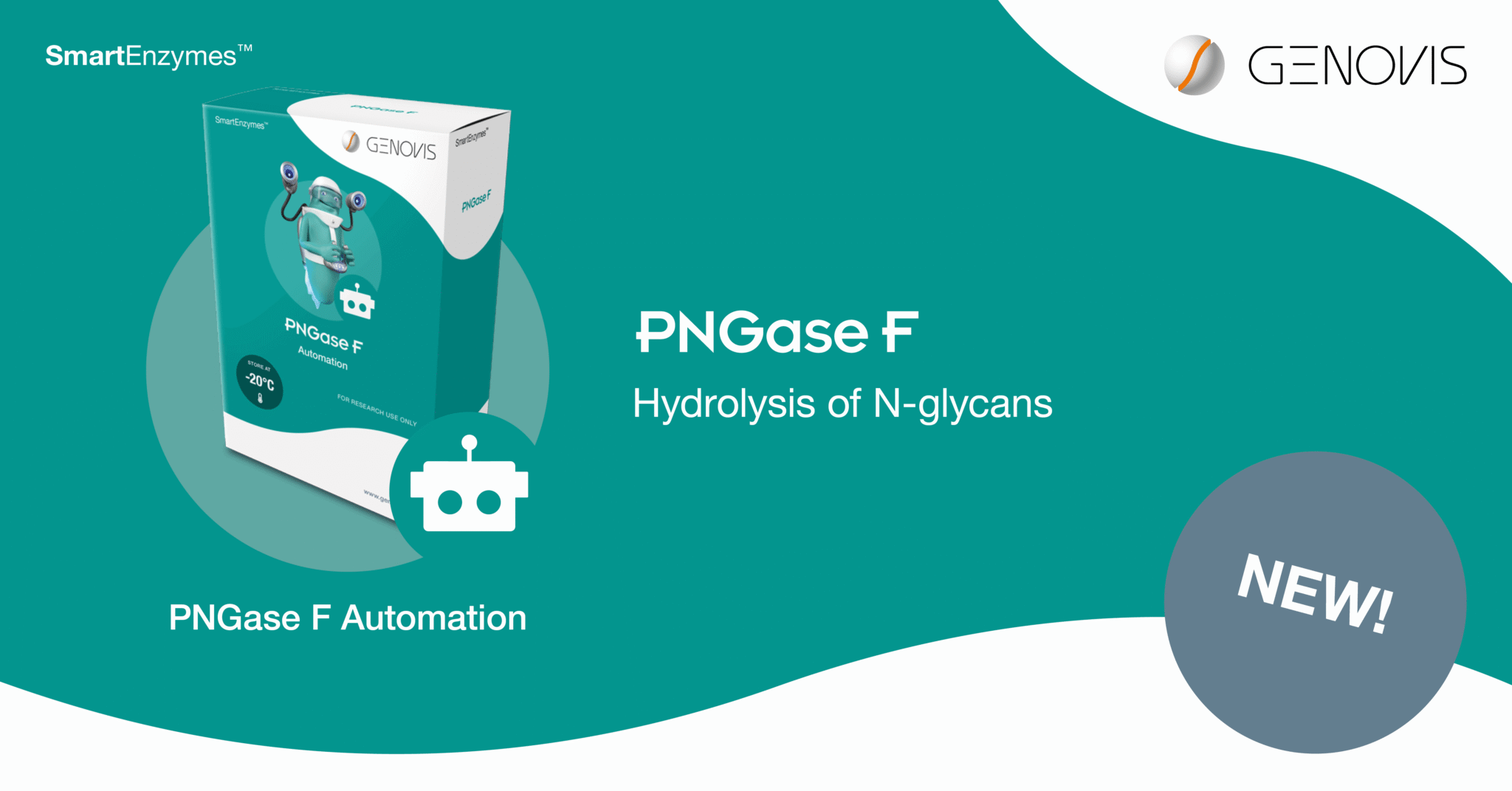 PNGase F is a glycoamidase hydrolyzing the amide bond between the polypeptide asparagine and the innermost GlcNAc of all mammalian asparagine-linked complex, hybrid, or high mannose oligosaccharides. Today, we’re excited to launch this well-known enzyme in a new and unique format – PNGase F Automation – for automated hydrolysis of N-glycans on glycoproteins!